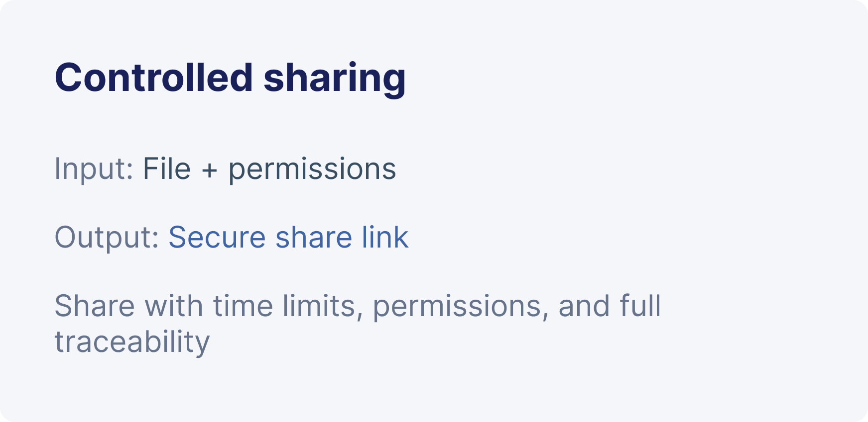 Share internally or externally with permissions, time limits, and traceability