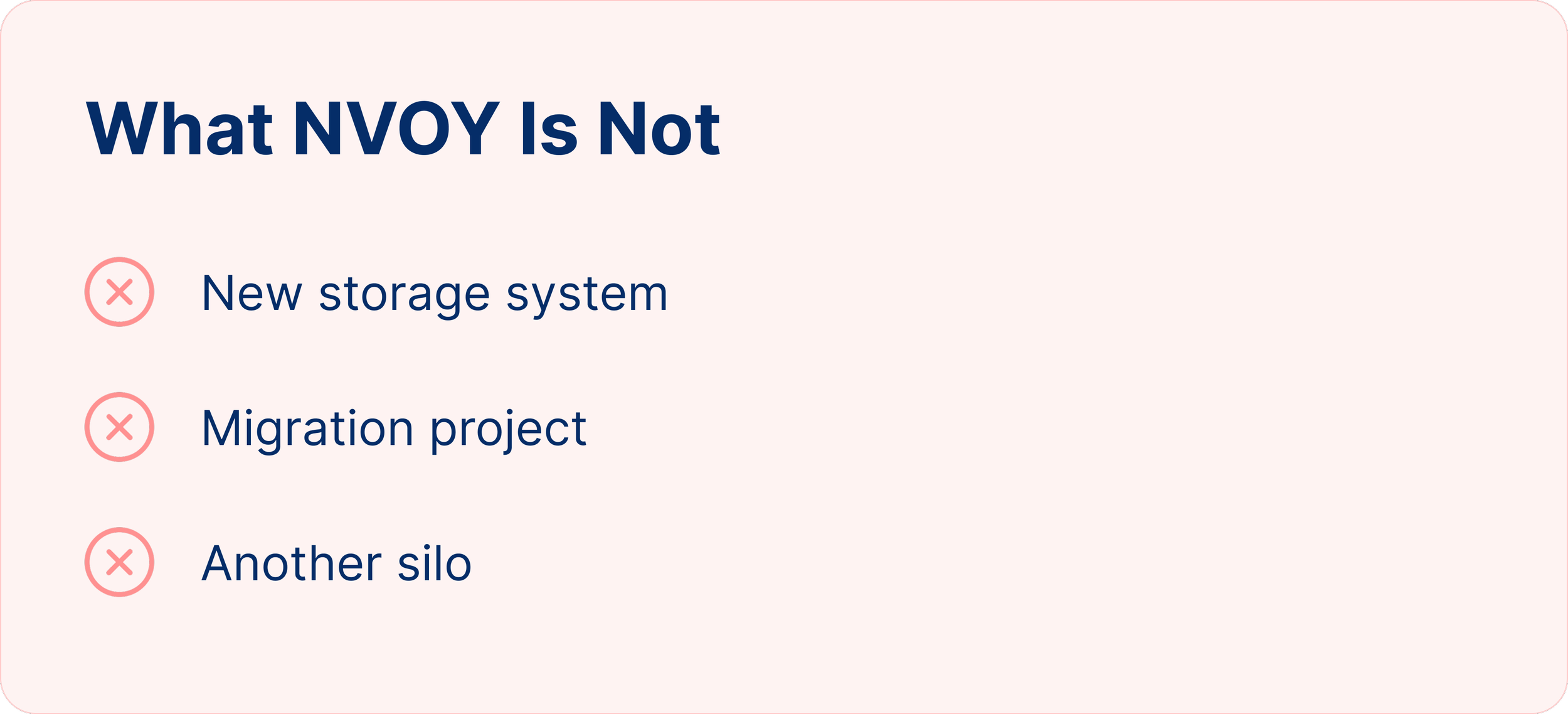 No. NVOY works on top of your existing systems. Files stay exactly where they are today. NVOY indexes and analyzes the content so everything becomes searchable without changing how your teams work.